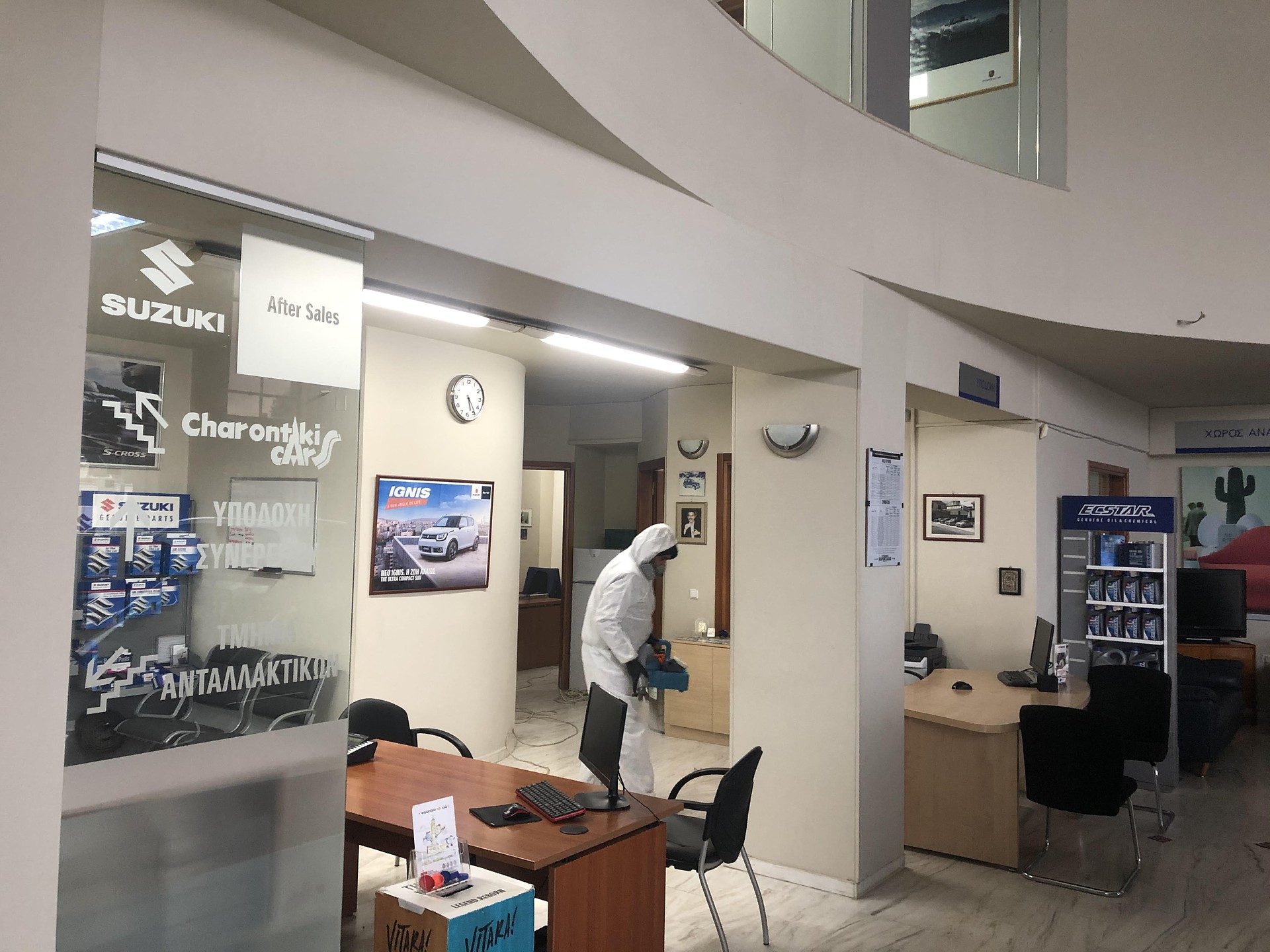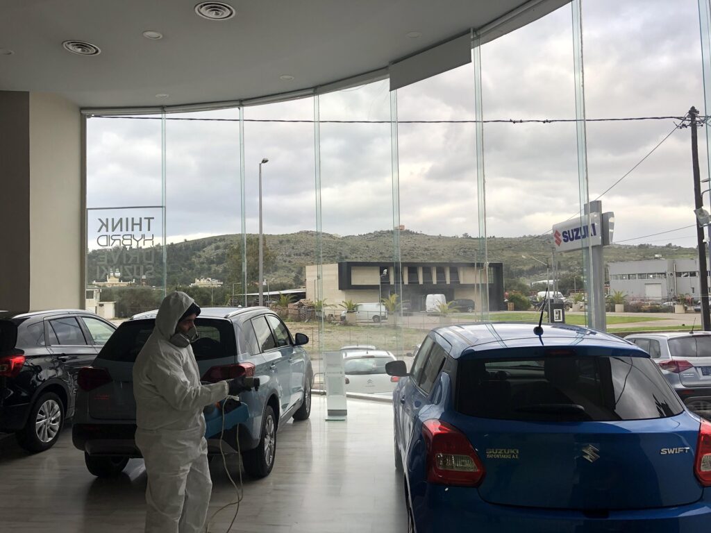 Πραγματοποιήθηκε σήμερα, στους χώρους της αντιπροσωπείας μας, πιστοποιημένη απολύμανση από ειδικό συνεργείο, για την αντιμετώπιση της μετάδοσης του κορονοιού και τη μέριμνα για τους πελάτες και το προσωπικό μας